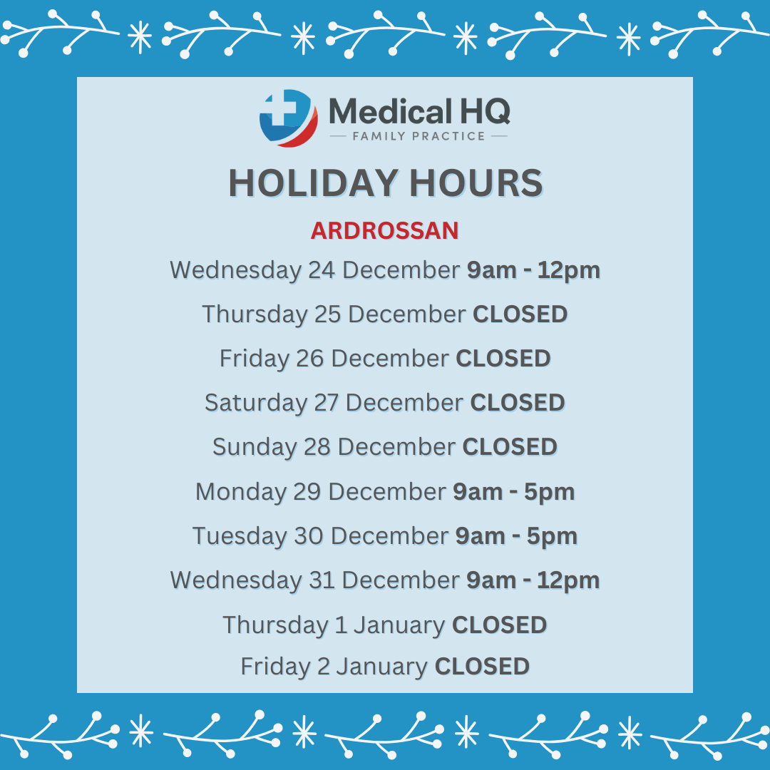 During Christmas our hours have slightly changed across the four practices.